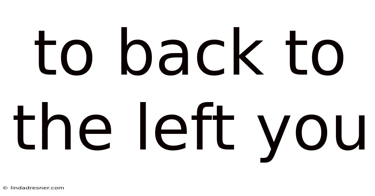 The phrase "to back to the left you" is an enigmatic expression that lacks a universally recognized definition. Its structure is unconventional, and its meaning is not immediately clear to most readers. Which means this ambiguity makes it a fascinating subject for analysis, particularly in the context of education, language, or cultural interpretation. So while the phrase may seem nonsensical at first glance, it could hold significance in specific contexts, such as a metaphorical statement, a directional instruction, or even a misphrased expression. This article aims to dissect the possible meanings of "to back to the left you," explore its potential applications, and provide a structured understanding of its implications.