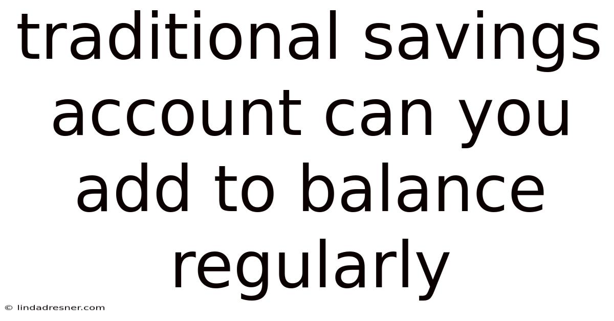 A traditional savings account can you add to balance regularly, turning everyday financial actions into a powerful engine for growth. And by scheduling automatic transfers, making manual deposits, and leveraging compound interest, you steadily increase your balance while maintaining full access to your funds. On top of that, the discipline of regular contributions not only builds a strong emergency fund but also cultivates long‑term financial confidence. Whether you are just starting to save or looking to optimize an existing account, consistent additions—no matter how small—compound over time, delivering a secure and prosperous financial future The details matter here..