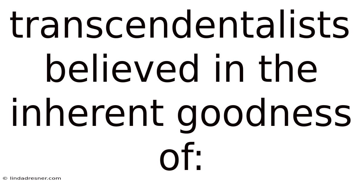 At the core of Transcendentalist thought was the conviction that every person possesses an innate goodness. Worth adding: this belief was not merely philosophical; it was a call to action. Also, the Transcendentalists argued that humanity was inherently good, capable of self-improvement and moral growth. They rejected the idea that people were inherently flawed or corrupt, instead emphasizing the potential for positive change within each individual. This perspective challenged the societal norms of the time, which often emphasized conformity and material success over personal development and spiritual fulfillment Turns out it matters..