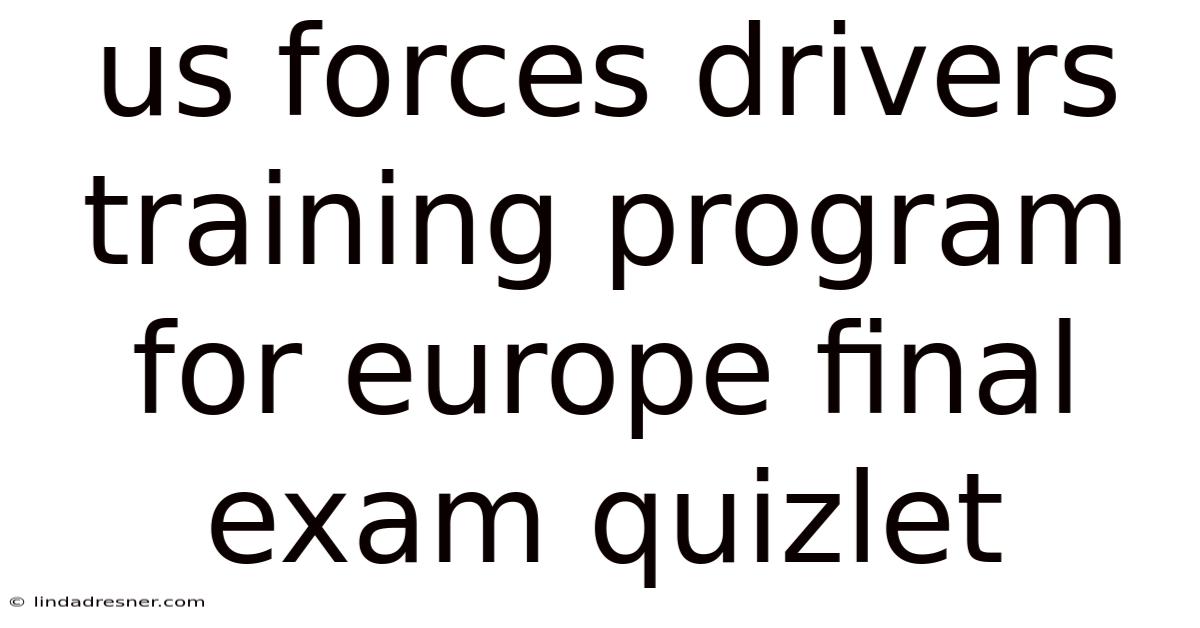 The U.This program is particularly important given the diverse road conditions, traffic laws, and cultural driving norms across European countries. That's why forces Drivers Training Program for Europe is a critical component of military readiness, ensuring that service members stationed in Europe are equipped with the knowledge and skills necessary to operate vehicles safely and in compliance with local regulations. In practice, s. The final exam, often studied using tools like Quizlet, serves as the culmination of this training, testing participants on their understanding of both theoretical and practical aspects of driving in Europe That's the part that actually makes a difference..