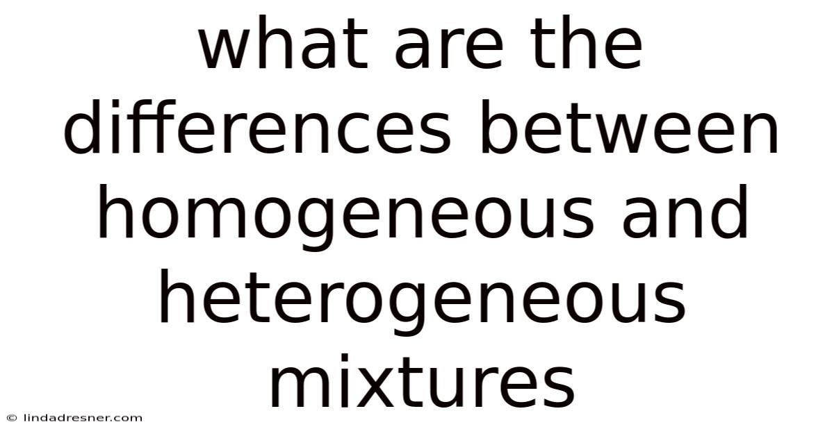 Mixtures are a fundamental concept in chemistry, representing the combination of two or more substances that retain their individual properties. On the flip side, understanding the differences between homogeneous and heterogeneous mixtures is crucial for grasping various chemical and physical processes. This article walks through the distinctions between these two types of mixtures, their characteristics, examples, and applications The details matter here..