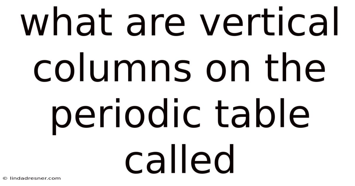 The periodic table is a fundamental tool in chemistry that organizes elements based on their atomic structure and properties. Among its most recognizable features are the vertical columns, which play a critical role in understanding how elements behave chemically. Now, these vertical columns are called groups. Each group contains elements that share similar chemical properties, making them a cornerstone of the periodic table’s organization Not complicated — just consistent. And it works..