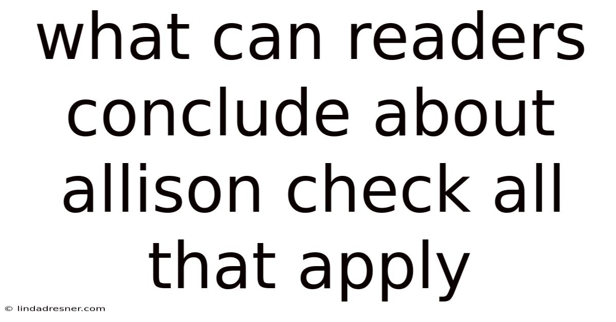 When a passage asks readers to “check all that apply” regarding a character named Allison, it is testing the ability to synthesize information, infer motives, and distinguish between explicit statements and implied meaning. By carefully analyzing the text, readers can draw multiple, often overlapping conclusions about Allison’s personality, actions, and relationships. This article breaks down the typical strategies used to arrive at accurate answers, explains the logical steps behind each inference, and provides a comprehensive checklist that can be applied to any similar “all that apply” question in reading comprehension tests And that's really what it comes down to..