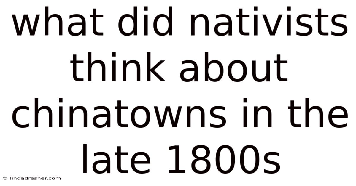 What Did NativistsThink About Chinatowns in the Late 1800s