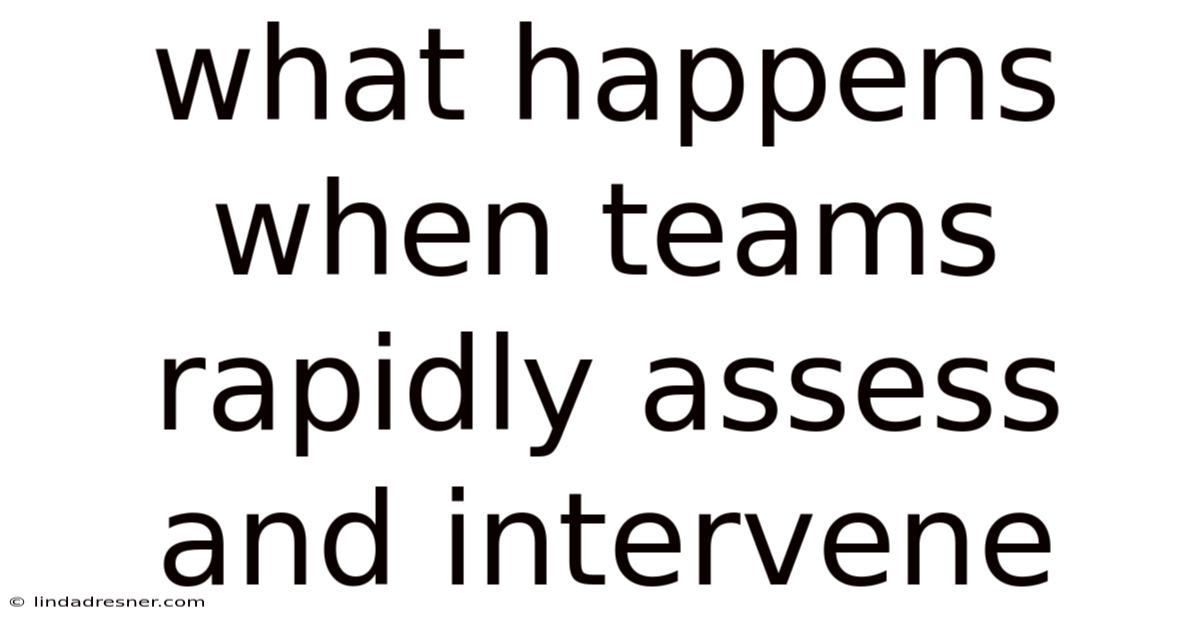 whathappens when teams rapidly assess and intervene is a critical dynamic in high‑stakes environments such as emergency response, healthcare, education, and corporate crisis management. When groups move swiftly from observation to decisive action, they can alter outcomes dramatically—sometimes turning potential disaster into a story of resilience. This article unpacks the mechanics behind rapid assessment and intervention, explores the psychological and operational factors that drive effectiveness, and answers the most common questions that arise when teams adopt this accelerated approach Most people skip this — try not to..