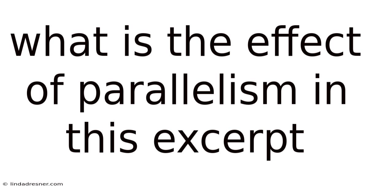 Parallelism, a cornerstone of rhetorical and literary technique, is a powerful tool that writers use to create rhythm, clarity, and emphasis in their work. Because of that, when applied effectively, parallelism can transform a simple sentence into a memorable and impactful statement. In the context of a specific excerpt, the effect of parallelism often lies in its ability to unify ideas, enhance readability, and evoke a particular emotional or intellectual response from the reader. This article explores how parallelism functions within a given text, examining its role in shaping meaning, reinforcing themes, and guiding the reader’s interpretation. By analyzing the structural and stylistic choices made by the author, we can uncover the nuanced ways in which parallelism contributes to the overall effectiveness of the excerpt.