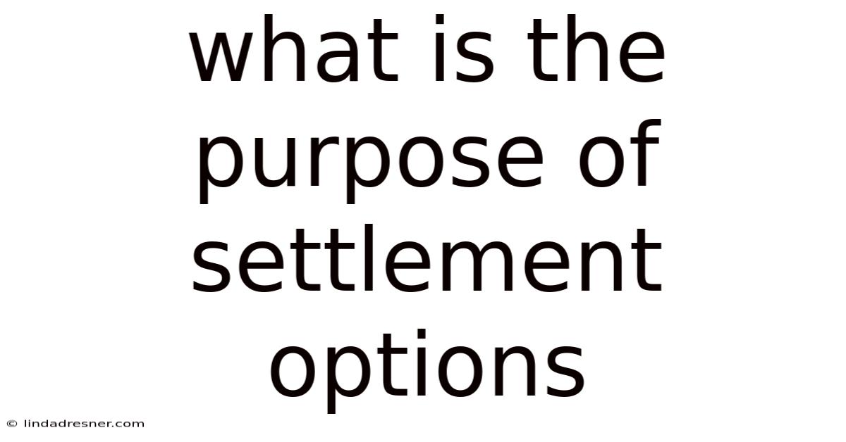 In this article we will explore the core objectives behind settlement options, the contexts in which they appear, the legal and financial frameworks that support them, and practical steps you can take to take advantage of them effectively. By the end, you’ll see why settlement options are more than just a “nice‑to‑have” – they are a strategic tool that protects assets, preserves relationships, and maintains market stability Simple as that..