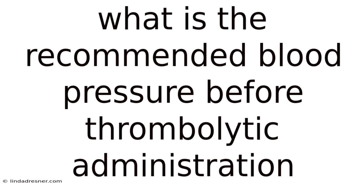Recommended Blood Pressure Before Thrombolytic Administration: A Critical Safety Threshold
