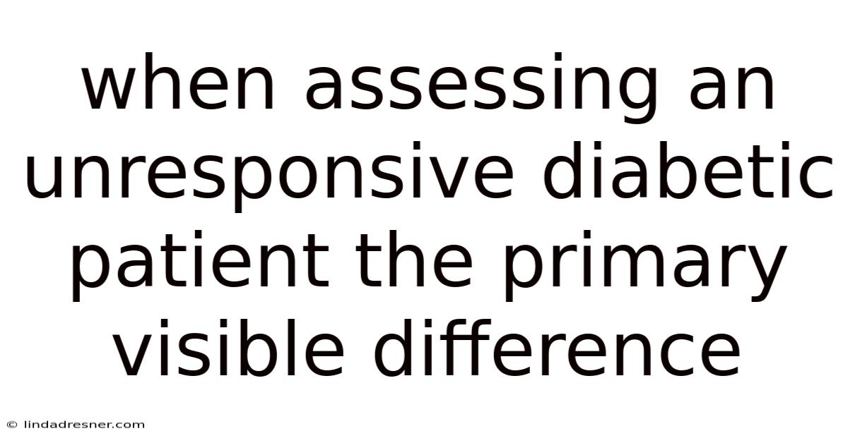 Understanding the primary visible difference when assessing an unresponsive diabetic patient is crucial for healthcare professionals and caregivers alike. On the flip side, when someone is unresponsive, every detail matters, and recognizing subtle cues can significantly impact the outcome. On the flip side, in this article, we will explore what sets the stage for effective assessment, focusing on the most noticeable signs that indicate a patient is not responding as expected. By delving into these indicators, we aim to empower readers with the knowledge needed to act swiftly and confidently in critical situations Turns out it matters..