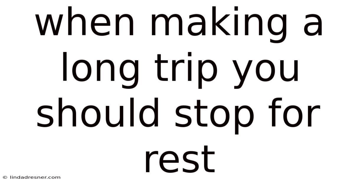 When Making a Long Trip You Should Stop for Rest: The Critical Role of Breaks in Ensuring Safety and Well-Being