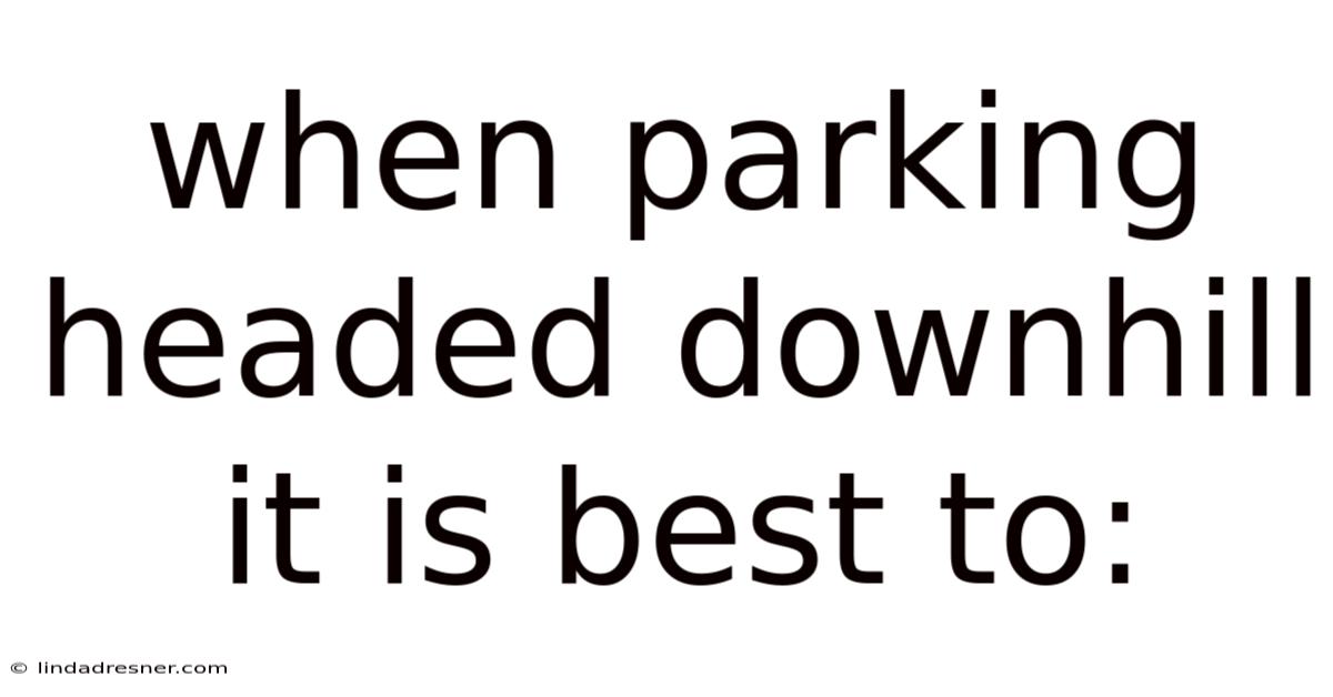 When Parking Headed Downhill It Is Best To: A Complete Guide