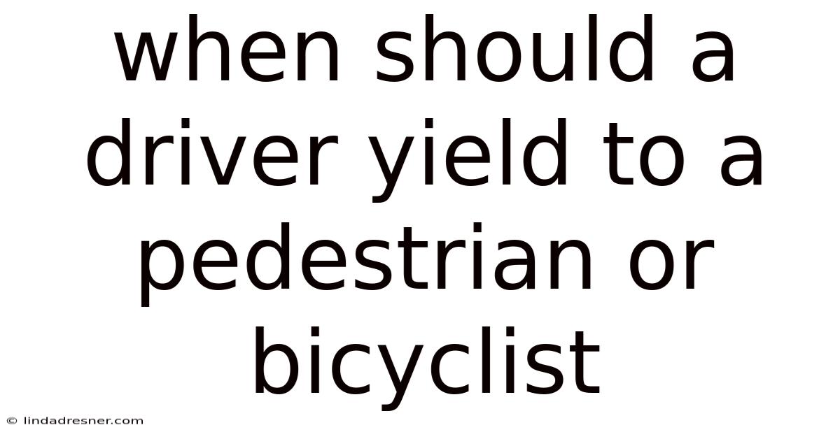 When should a driver yield to a pedestrian or bicyclist? This question is crucial for road safety and reflects the shared responsibility of all road users. Yielding is not just a legal obligation but a moral imperative that protects vulnerable individuals who cannot defend themselves in a collision. That's why whether it’s a pedestrian crossing the street or a bicyclist navigating a busy road, drivers must understand the specific situations where yielding is required. Which means failing to do so can lead to severe consequences, including injuries, fatalities, and legal penalties. This article explores the key scenarios, legal requirements, and practical steps drivers should take to ensure safety for pedestrians and bicyclists The details matter here..