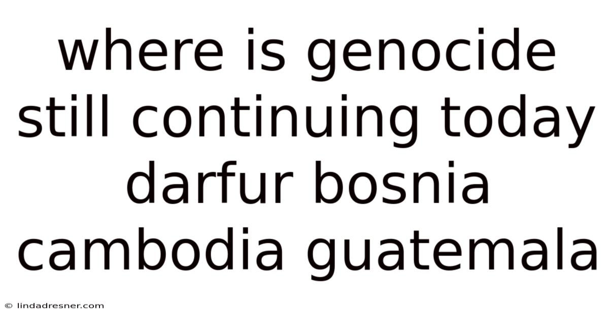The question of where is genocide still continuing today darfur bosnia cambodia guatemala reflects a profound concern about humanity’s darkest chapters and whether they are truly behind us. While Cambodia, Bosnia, and Guatemala represent devastating historical atrocities that have officially concluded, the crisis in Darfur remains a stark reminder that mass violence and ethnic targeting can persist for decades. In real terms, understanding the current reality requires separating past tragedies from present emergencies, recognizing how international law defines genocide, and identifying where vulnerable populations still face systematic destruction. This article explores the factual status of each region, clarifies ongoing humanitarian crises, and explains how global institutions monitor and respond to mass atrocities in the modern era And that's really what it comes down to..