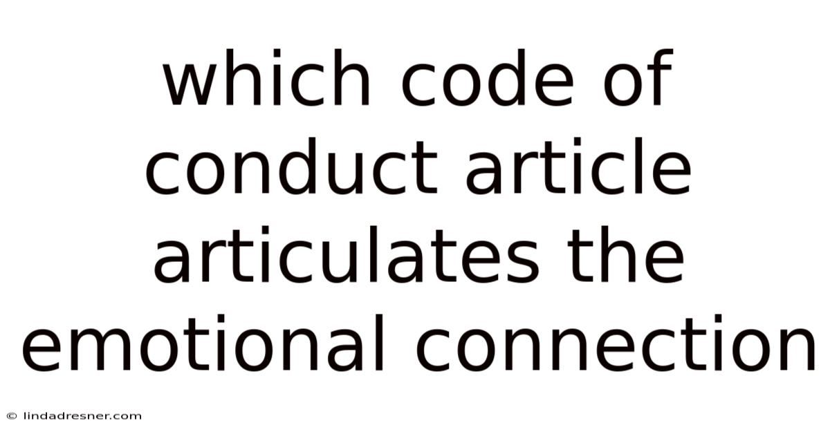 The concept of emotional connection—the ability to recognize, respect, and respond to the feelings of others—has become a cornerstone of ethical practice across many professions. Practically speaking, while traditional codes of conduct often focus on confidentiality, competence, and integrity, a growing number of professional bodies have explicitly incorporated language that addresses the emotional dimension of client‑provider relationships. This article explores which specific article or clause within major codes of conduct articulates the emotional connection, why it matters, and how it translates into everyday practice But it adds up..