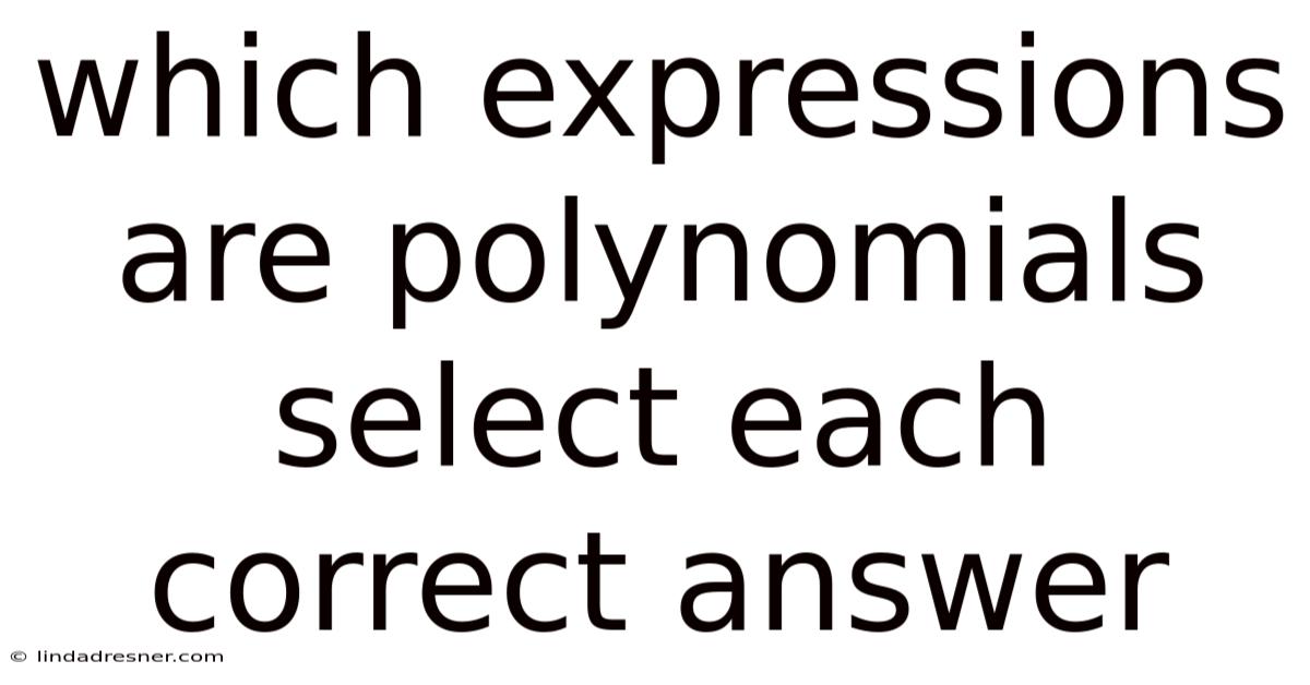 By checking each expression for these characteristics, you can confidently select the correct answers when asked which expressions are polynomials. Which means remember, the key is to look for whole number exponents, no variables in denominators, and no variables under root signs or in exponents. With this understanding, you'll be well-prepared to tackle any question about polynomials in your studies Small thing, real impact..