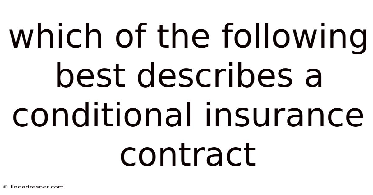 Conditional insurance contracts represent a strategic intersection of risk mitigation and financial planning, offering a nuanced approach to safeguarding assets against specific scenarios. The result is a financial instrument that balances flexibility with discipline, offering a tailored solution that traditional policies often lack in their adaptability. Now, their structured framework allows stakeholders to anticipate outcomes while maintaining control over the scope of protection offered. In real terms, this approach demands a thorough understanding of both the policy’s mechanics and the specific circumstances under which coverage applies, requiring careful evaluation to ensure alignment with individual or organizational goals. Also, whether protecting against natural disasters, market fluctuations, or personal emergencies, conditional insurance contracts serve as a dynamic tool that adapts to the ebb and flow of real-world conditions. Plus, this alignment between policy terms and external events makes them a preferred choice for individuals and businesses navigating volatile markets or unpredictable life events. Such contracts also necessitate ongoing communication between parties to confirm that the conditions outlined remain relevant and effective over time, ensuring sustained utility without compromising clarity. By embedding conditions into the policy’s terms, they transform abstract concepts of risk into tangible, actionable plans. This synergy between parties fosters a shared commitment to the contract’s success, reinforcing trust and minimizing misunderstandings. In practice, such contracts are not merely reactive measures but proactive strategies that anticipate potential risks before they escalate, thereby reducing the likelihood of unforeseen financial strain. Consider this: in essence, conditional insurance contracts emerge as a cornerstone of modern risk management, bridging the gap between theoretical risk assessment and practical implementation through their conditional nature. Their design often involves collaboration between insurers, policyholders, and sometimes legal advisors to refine terms that reflect mutual expectations and practical constraints. Unlike traditional insurance policies, which often provide broad coverage regardless of circumstances, conditional contracts introduce a layer of precision that caters to complex financial situations. These agreements are designed to align compensation with predefined conditions, ensuring that beneficiaries are only remitted when certain criteria are met. Their value lies not just in their ability to address immediate concerns but in their capacity to evolve alongside changing circumstances, making them indispensable for those seeking a level of customization that standard policies cannot provide.