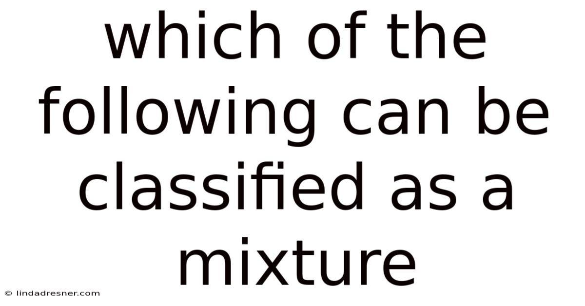 The classification of matter is a cornerstone of scientific literacy. Even so, when educators and exam creators ask which of the following can be classified as a mixture, they are testing your ability to distinguish between materials that can be physically separated and those that require chemical reactions to break apart. Worth adding: everything around us, from the air we breathe to the metals in our devices, falls into one of two broad categories: pure substances or mixtures. Consider this: pure substances include elements and compounds, both of which have fixed chemical compositions and distinct properties. Mixtures, on the other hand, are physical combinations where substances coexist without forming new chemical bonds. Recognizing this difference not only helps you ace chemistry assessments but also equips you with a practical lens for understanding food science, environmental studies, materials engineering, and everyday household products That's the whole idea..