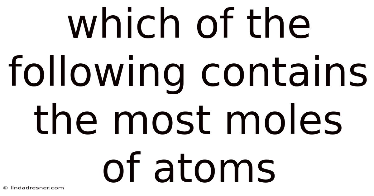 Understanding how to determine which of the following contains the most moles of atoms is a fundamental skill in chemistry that bridges the gap between microscopic particles and macroscopic measurements. Whether you are a high school student tackling stoichiometry or a college student preparing for organic chemistry, mastering the relationship between mass, moles, and individual atoms is crucial. This guide will break down the mathematical logic, the chemical principles, and the step-by-step processes required to solve these types of problems with absolute precision Nothing fancy..