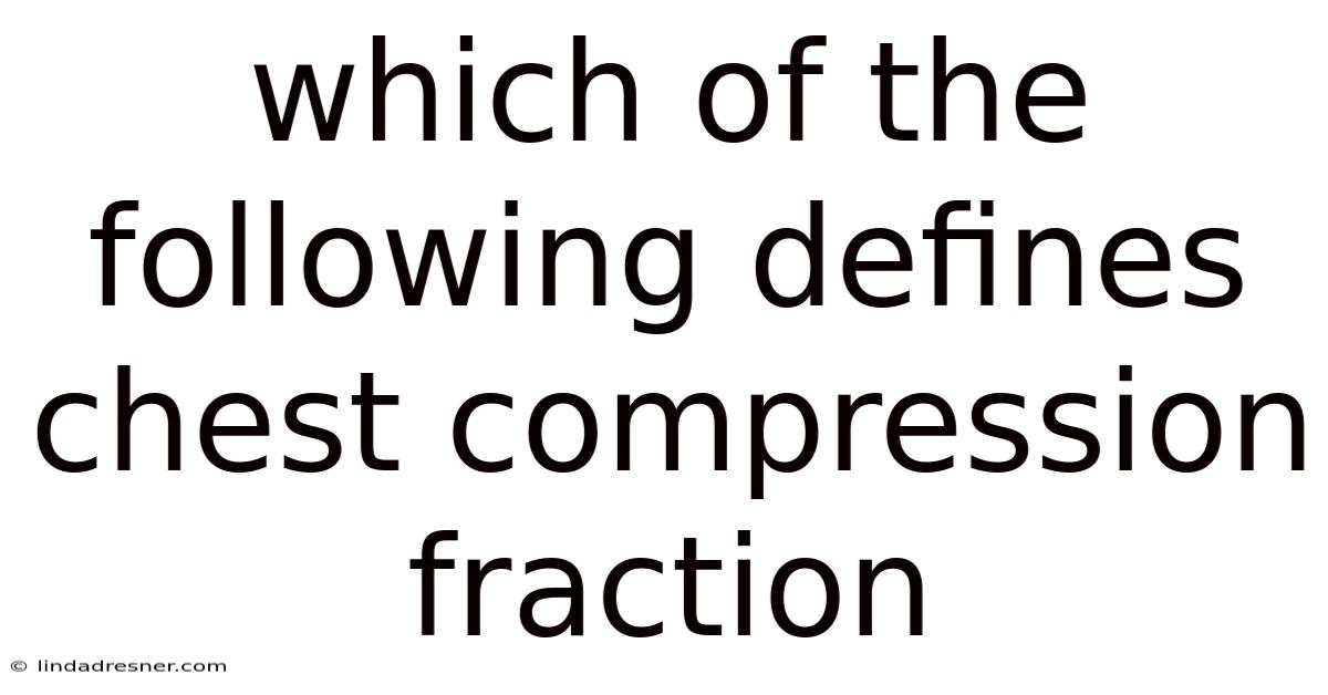 Chest compression fraction defines the proportion of total resuscitation time during which continuous, high-quality chest compressions are delivered to a patient in cardiac arrest. This metric serves as a core performance indicator in emergency cardiovascular care, reflecting how effectively a resuscitation team minimizes interruptions and maintains blood flow to vital organs. Understanding which of the following defines chest compression fraction is essential for clinicians, first responders, and lay rescuers who aim to improve survival outcomes. By focusing on the ratio of compression time to total resuscitation duration, healthcare systems can identify gaps in care, refine team coordination, and strengthen the chain of survival And that's really what it comes down to..
