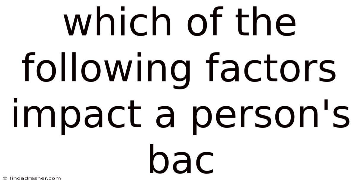 Age can also impact BAC, as older adults may metabolize alcohol more slowly than younger individuals. This is due to changes in body composition and decreased liver function that often occur with aging.