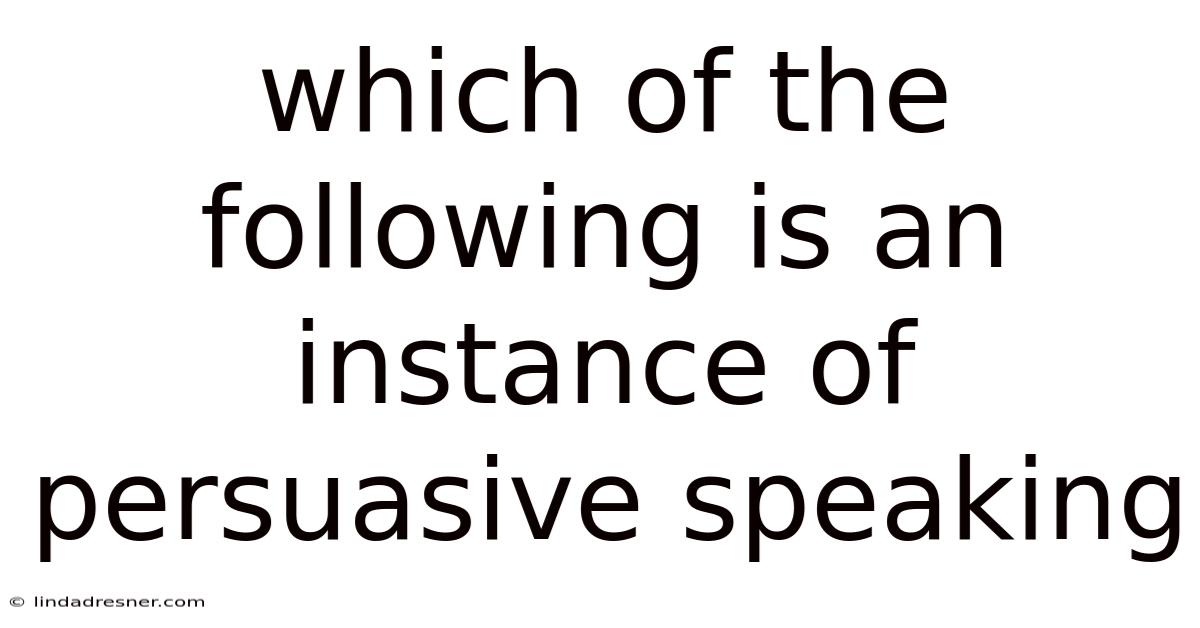 Identifying which of the following is an instance of persuasive speaking is a common challenge for students of communication, public speaking, and rhetoric. Plus, at its core, persuasive speaking is the art of using words, logic, and emotion to influence the beliefs, attitudes, values, or behaviors of an audience. In real terms, unlike informative speaking, which seeks to teach or explain, persuasive speaking seeks to move the listener toward a specific point of view or a call to action. Whether it is a politician campaigning for votes, a salesperson pitching a product, or an activist demanding social change, persuasion is a fundamental pillar of human interaction That's the whole idea..