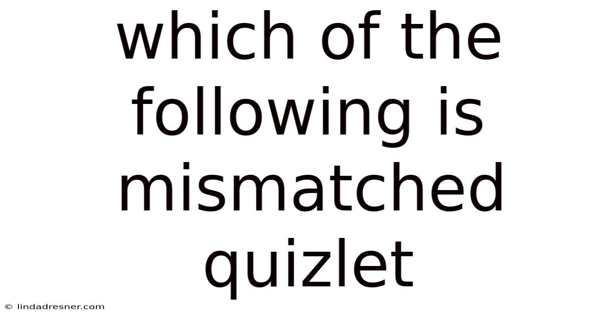 Identifying which of the following is mismatched quizlet is more than a test-taking skill. It is a cognitive tool that sharpens attention, strengthens memory, and builds adaptable knowledge. By practicing mismatch detection with intention, learners move beyond surface-level recall and develop the precision required for complex problem solving. Whether studying for exams, mastering new subjects, or refining professional expertise, this approach offers lasting benefits that extend far beyond the classroom Not complicated — just consistent..