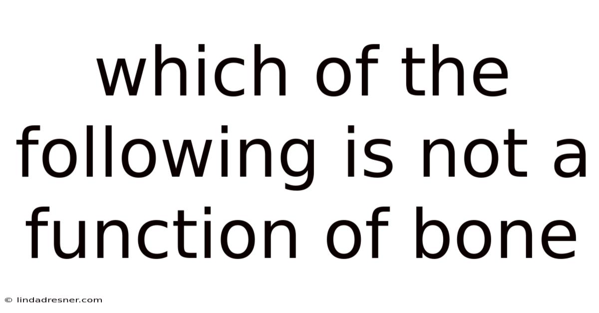 Which of the following is not a function of bone is a common question in anatomy and physiology that tests fundamental knowledge regarding the skeletal system. Bones are far more than rigid scaffolding; they are dynamic, living organs performing a suite of critical tasks essential for survival. While functions like structural support, protection of vital organs, and mineral storage are universally accepted, identifying the incorrect option requires a clear understanding of the biological roles bones fulfill. This thorough look will dissect the anatomy of bone, enumerate their true physiological functions, and provide a detailed analysis to clarify what activities are definitively outside their biological mandate Simple as that..