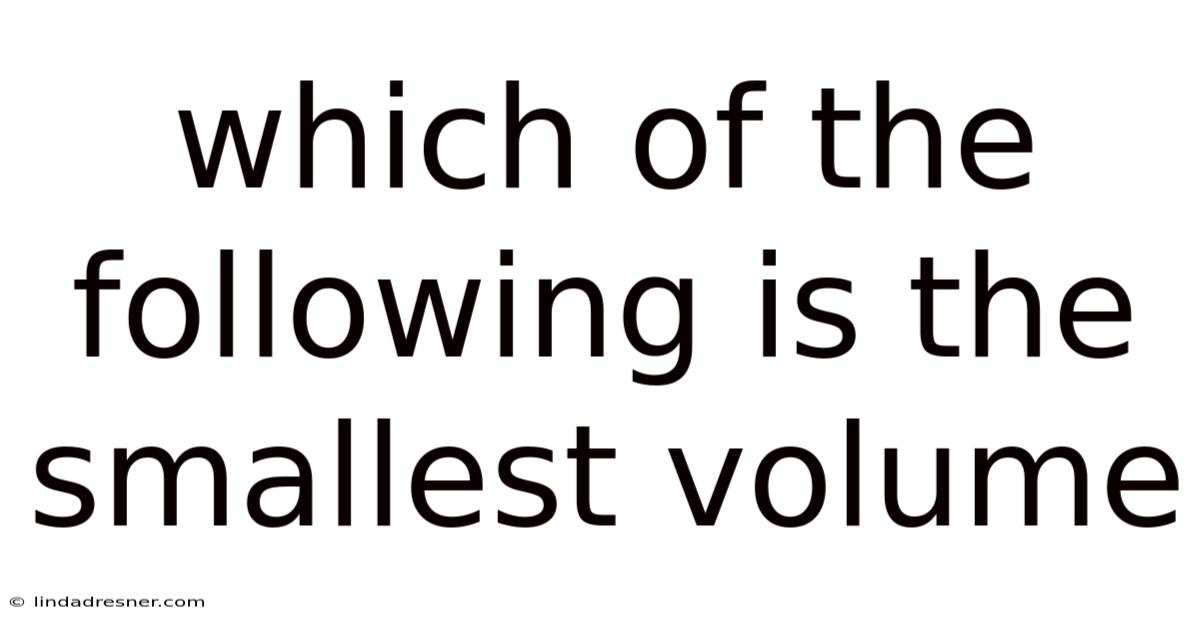 Volume is a fundamental measurement in science and everyday life, representing the three-dimensional space occupied by matter. Which means when we ask "which of the following is the smallest volume," we're exploring the fascinating world of scale and measurement. Understanding volume comparisons helps us grasp the immense range of sizes in our universe, from subatomic particles to celestial bodies. This article will examine volume measurements across different scales, helping you understand how scientists determine and compare volumes at the microscopic, macroscopic, and cosmic levels Small thing, real impact. Surprisingly effective..