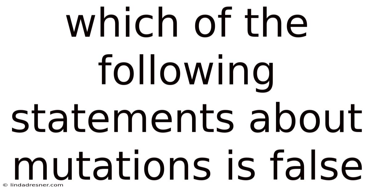 Mutations are fundamental to the study of genetics and evolution, yet they are often misunderstood. Worth adding: these changes can occur spontaneously or be induced by environmental factors such as radiation or chemicals. In real terms, while mutations are frequently associated with diseases or harmful effects, their role in biology is far more complex. This article aims to clarify common misconceptions by evaluating specific statements about mutations and identifying which one is false. A mutation is defined as a change in the DNA sequence of an organism’s genome. Understanding the truth about mutations is critical for grasping how genetic diversity arises and how organisms adapt to their environments Nothing fancy..