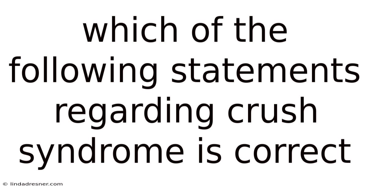 Crush syndrome, also known as traumatic rhabdomyolysis or reperfusion injury syndrome, is a life-threatening systemic condition that arises from the prolonged compression of muscle mass, followed by the sudden release of that pressure. It is a critical diagnosis in trauma, disaster response, and industrial medicine, yet it is frequently misunderstood. The distinction between a simple crush injury and full-blown crush syndrome is critical, as it dictates a fundamentally different and aggressive treatment approach. Even so, this article will definitively clarify the correct statements regarding crush syndrome, dismantling common myths and establishing the evidence-based principles that guide its management. The core truth is that crush syndrome is a systemic catastrophe triggered by the reperfusion of damaged muscle, not merely the initial injury itself Which is the point..