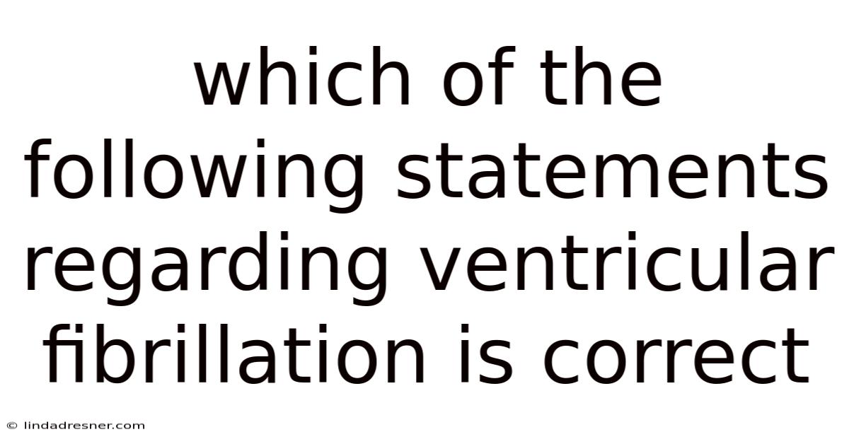 Ventricular fibrillation represents a true medical emergency requiring immediate recognition and intervention. Think about it: the correct statements about this condition stress its lethal nature, the necessity of rapid defibrillation, and its role as a primary cause of sudden cardiac death. Understanding these facts can mean the difference between life and death—whether you are a healthcare provider or a bystander witness to cardiac arrest That alone is useful..