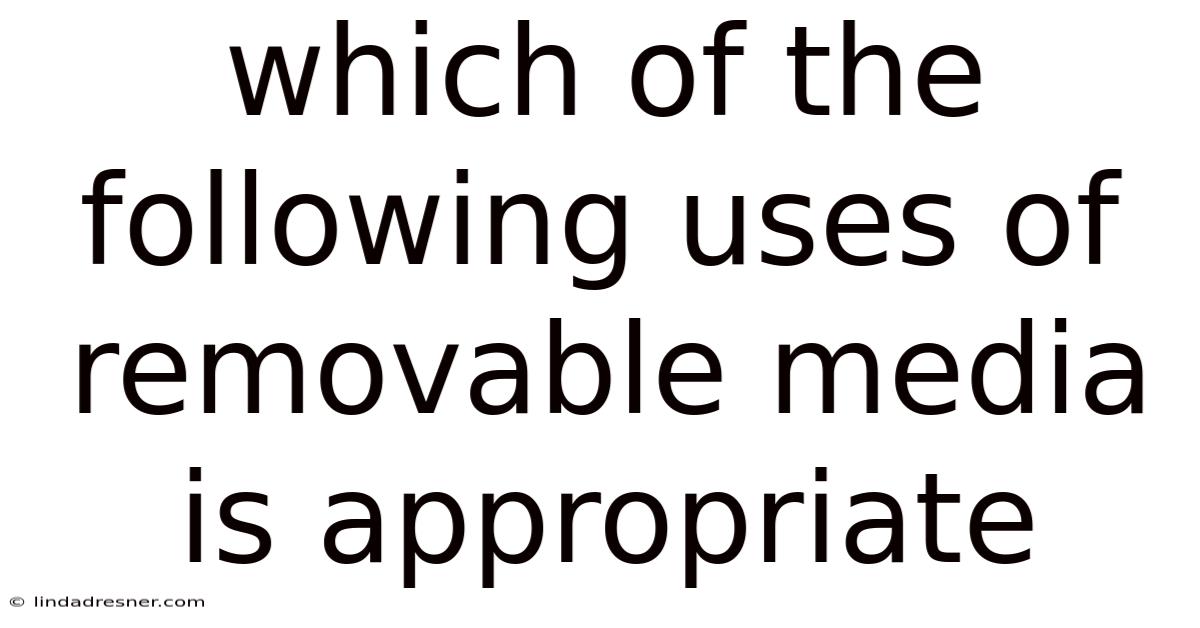 Removable media has long been a cornerstone of data storage and transfer, offering flexibility and portability for users across personal, professional, and educational settings. Understanding which uses are suitable requires a clear grasp of the strengths and limitations of different types of removable media, such as USB drives, external hard drives, CDs, DVDs, and flash memory cards. Still, not all uses of removable media are equally appropriate. The appropriateness of using removable media depends on factors such as data security, reliability, accessibility, and the specific context of the task. This article explores the key considerations for determining appropriate uses of removable media, ensuring users can make informed decisions that align with their needs Took long enough..