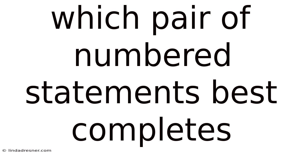 Identifying which pair of numbered statements best completes a logical sequence requires careful analysis, pattern recognition, and logical reasoning. By understanding the structure of sequences, following a systematic approach, and practicing regularly, you can improve your ability to solve these types of problems efficiently. Whether for academic purposes or personal development, mastering logical sequences is a valuable skill that enhances your overall cognitive abilities.