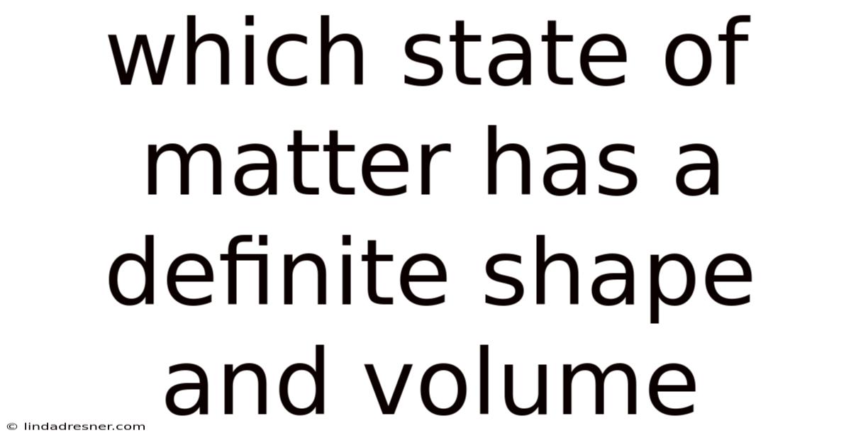 When we think about the different states of matter, we often encounter familiar examples such as water, ice, and steam. Solids are unique because their particles are tightly packed in a fixed arrangement, which gives them a clear shape and a consistent volume. To answer this, we must walk through the structure of matter and the forces that hold particles together. That said, the question of which state has a definite shape and volume is particularly intriguing. This property makes them incredibly useful in various applications, from construction to technology The details matter here..