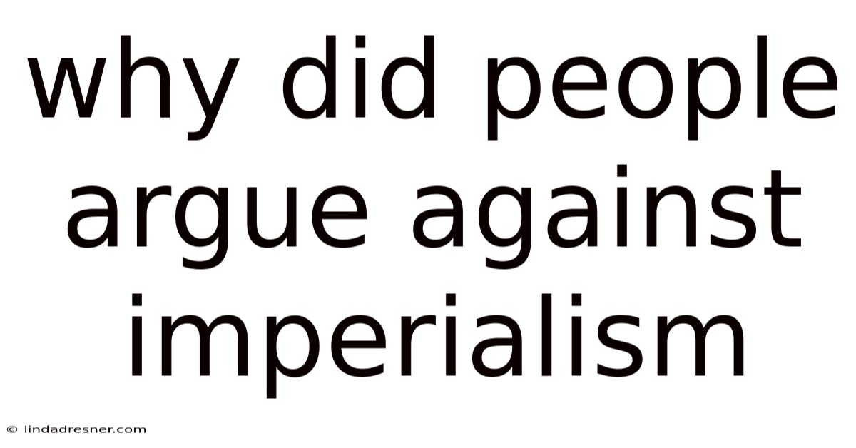 Why Did People Argue Against Imperialism
