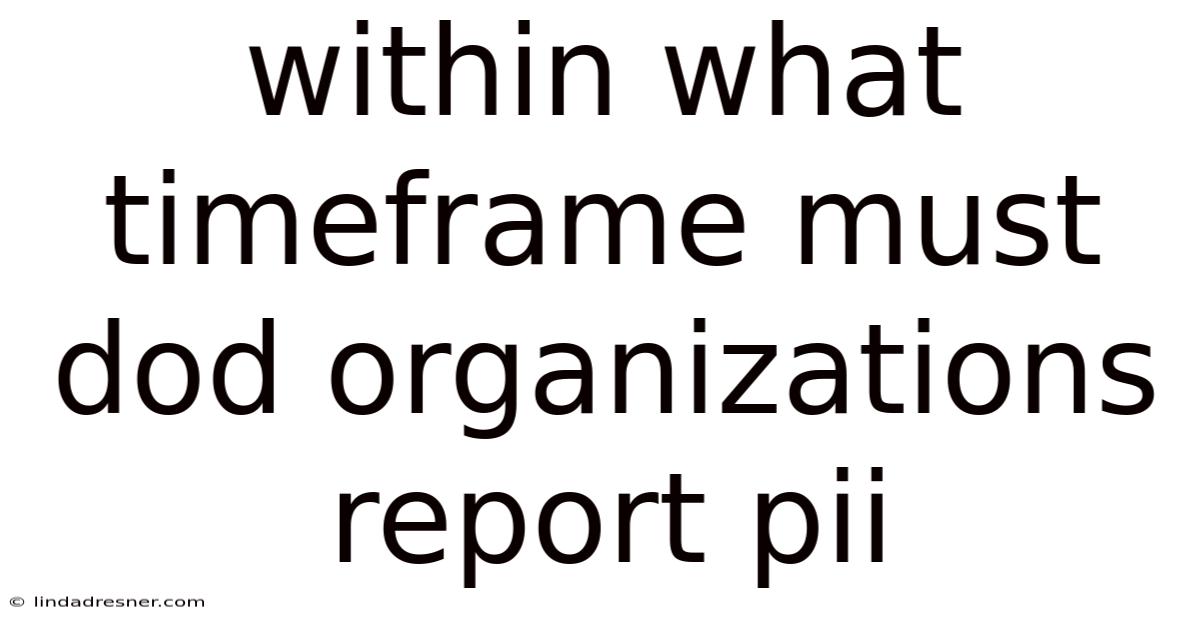 Understanding the Timeline for Dod Organizations to Report PII is crucial for maintaining compliance and safeguarding sensitive information. Worth adding: as organizations deal with the complex landscape of data protection laws, Make sure you grasp the specific timeframes that govern the reporting of personally identifiable information. Now, it matters. This article breaks down the key aspects of this requirement, offering insights into how businesses can effectively manage their data responsibly Which is the point..