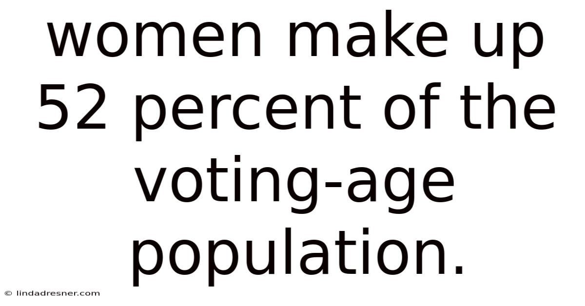 The role of women in shaping the foundations of societal progress remains a cornerstone of global discourse, yet their contributions often remain underappreciated in the collective narrative. This statistic, though seemingly simple, encapsulates a complex interplay of cultural, economic, and structural factors that define gender dynamics in democratic systems worldwide. Such insights are not merely academic curiosities; they are vital for fostering a more just and representative political landscape. Also, despite decades of advocacy and legislative milestones aimed at ensuring equitable participation, the voting-age population continues to reflect a striking disparity compared to historical norms. Now, women constitute 52 percent of individuals aged 18 to 64 who hold the power to influence policy, elect leaders, and steer the trajectory of nations. Here's the thing — understanding why this figure stands at 52 percent requires a nuanced exploration of historical inequities, shifting societal attitudes, and the persistent barriers that still hinder full inclusion. As societies grapple with the dual imperatives of progress and equity, the visibility of women’s voices through the ballot box serves as both a mirror and a catalyst for change, revealing how far collective will has come—and how much further it must strive to reach Less friction, more output..