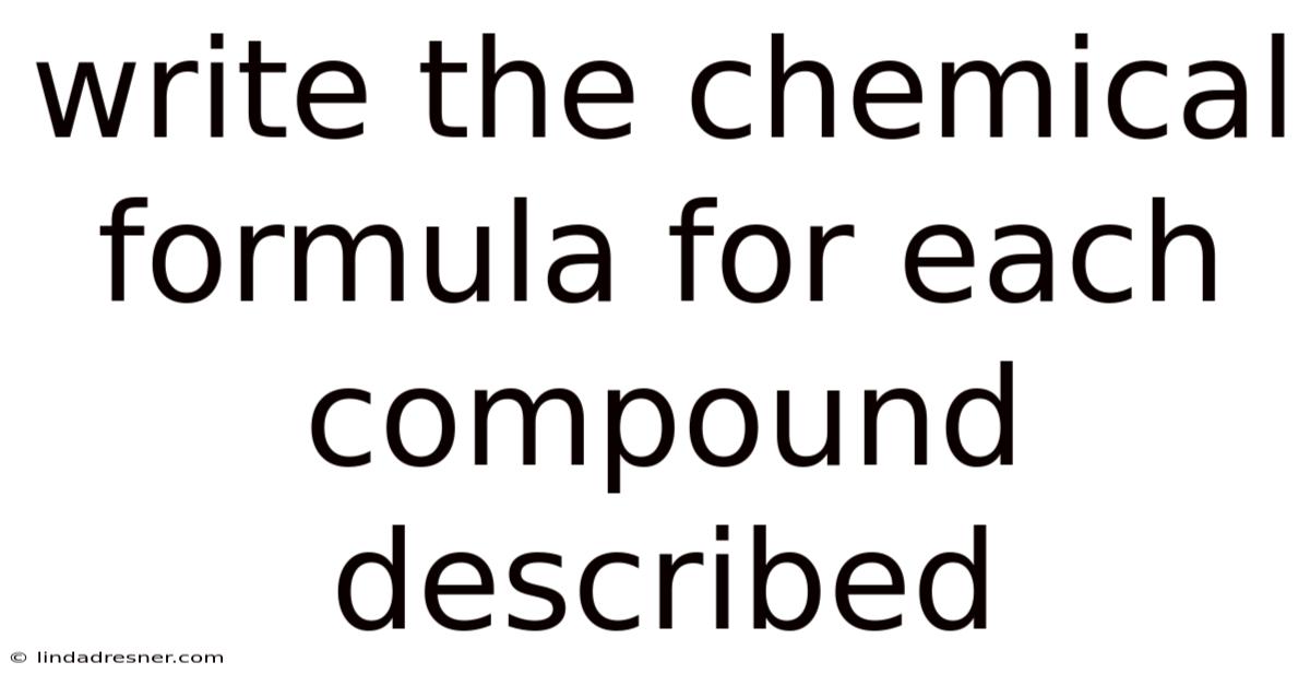 Writing the chemical formula for each compound described is a foundational skill that bridges everyday language with the precise logic of chemistry. In real terms, whether you are naming ionic salts, molecular gases, or acids, translating description into symbols requires attention to charge, ratio, and convention. This guide walks through principles, patterns, and problem-solving steps so you can confidently write formulas for compounds described in words, tables, or laboratory notes.