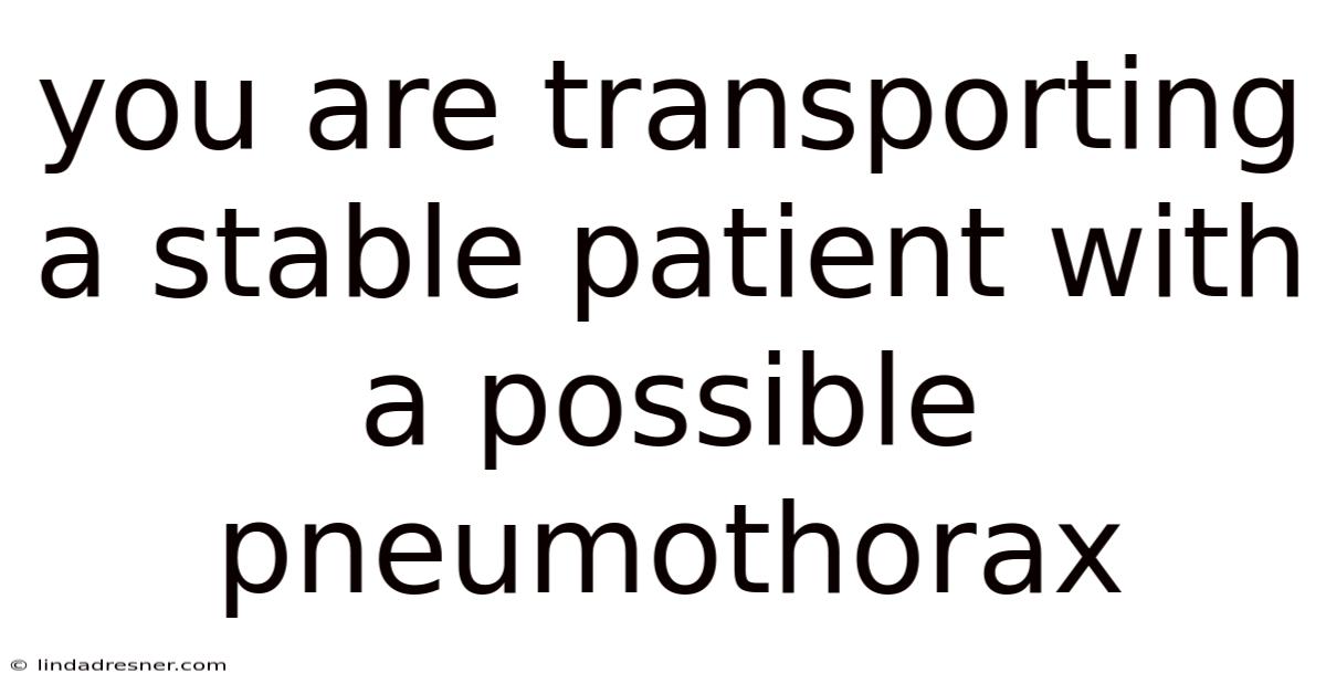 Transporting a stable patient with a possible pneumothorax requires meticulous planning, precise communication, and adherence to established protocols to ensure patient safety and optimal outcomes. This guide outlines the essential steps, clinical considerations, and practical tips for healthcare professionals involved in the safe transfer of such patients, whether within a hospital setting or to an external facility And that's really what it comes down to..